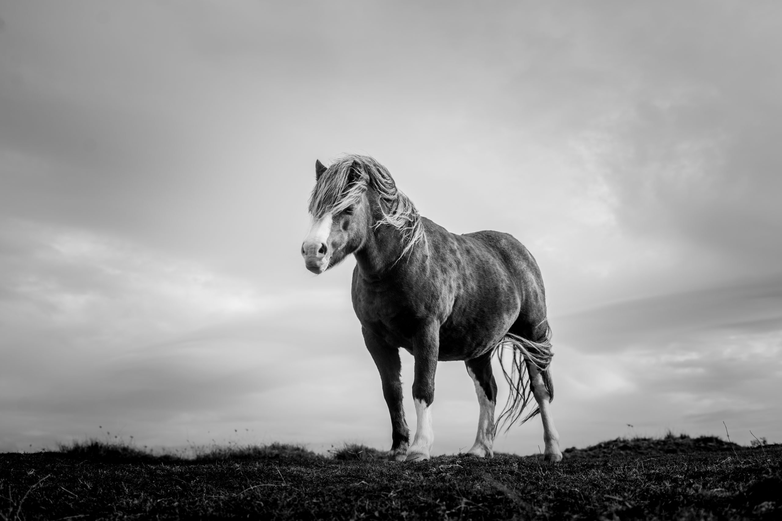 Wild Horse of Ynys Llanddwyn – Black and White Fine Art Print (24×16″)